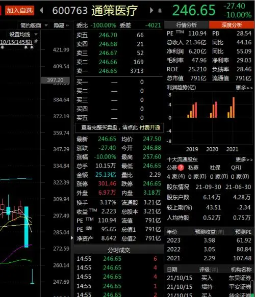 二級市場上,本已接近1000億市值的通策醫療已連續兩個交易日跌停,最新市值791億元,兩天市值蒸發了近200億元。