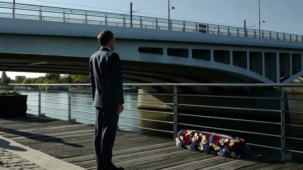 馬克龍16日參加了巴黎慘案60週年的儀式。他在巴黎郊區貝松橋上為遇難者默哀一分鐘並獻上花圈,這是1961年阿爾及利亞人舉行抗議的起點。