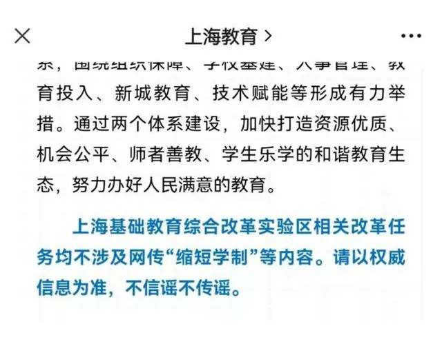 教育部、各實驗區紛紛闢謠:“縮短學制”等説法不實