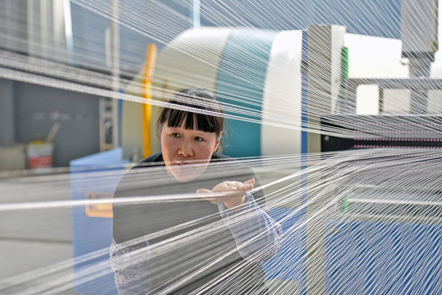 2020年11月9日,江蘇淮安市一家紡織廠車間正在生產化纖材料。圖|IC photo