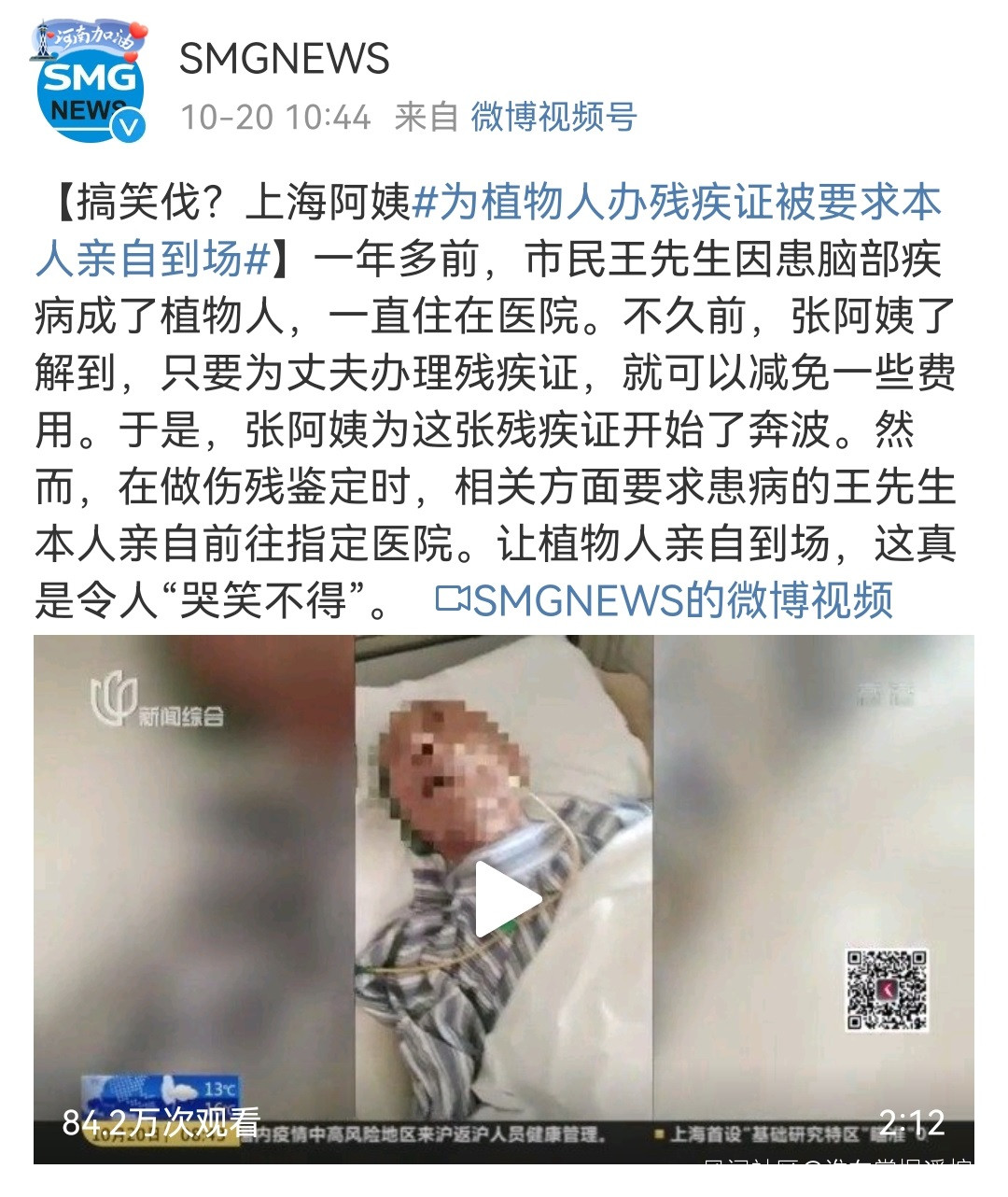 為植物人辦殘疾證,被要求本人親自到場,這事離譜嗎?_風聞