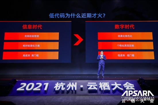 阿里雲智能總裁張建鋒認為,基於雲的軟件開發方式發生了根本變化,在傳統IT時代,開源軟件只是大型商業軟件的補充,但云計算出現之後,大型軟件向系統軟件轉變,應用軟件讓企業自己開發。基於釘釘的低代碼開發是一種新的開源模式。任何業務人員、哪怕不懂代碼,也可以搭建自己的應用,加快創新速度。