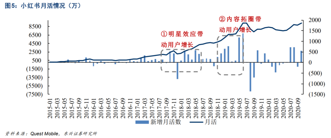 數據顯示,2017年6月,小紅書用户數為5000萬,2018年4月就激增至1億,用户活躍度接近3000萬。