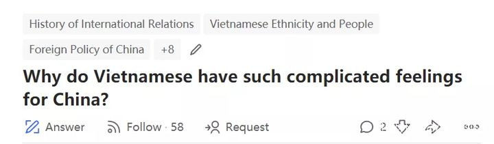 在外網,有一個話題:為什麼越南人對中國有如此複雜的感情?這個話題吸引了很多越南網民發表自己的意見,其中不乏高贊回答。