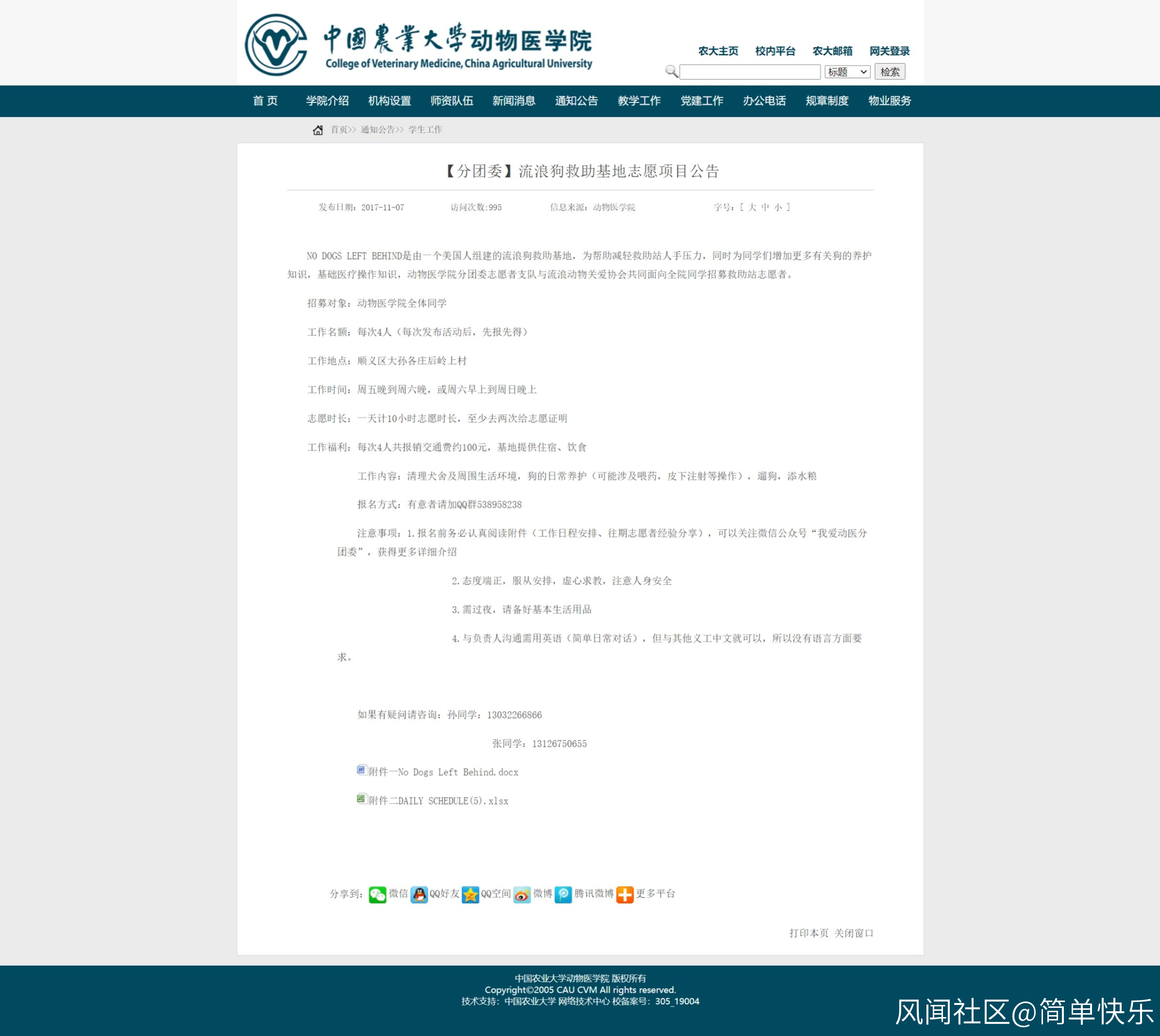 第三,中國農業大學竟然與NDLB合作,在學生中招募志願者前往NDLB的“流浪狗基地”工作。這些學生可以報銷交通費,還能得到“志願時長”和“志願證明”。