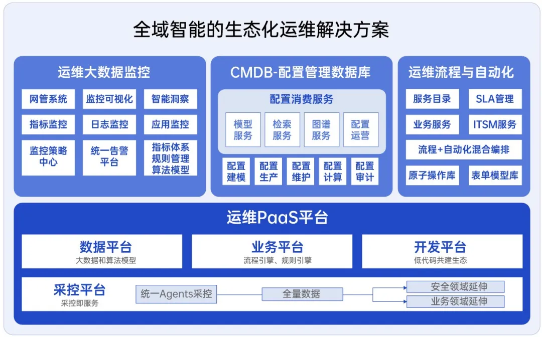 答案在徐育毅選擇的特殊路徑——全域運維服務能力,即包含從前台的ITSM環節到後台的ITOM環節。