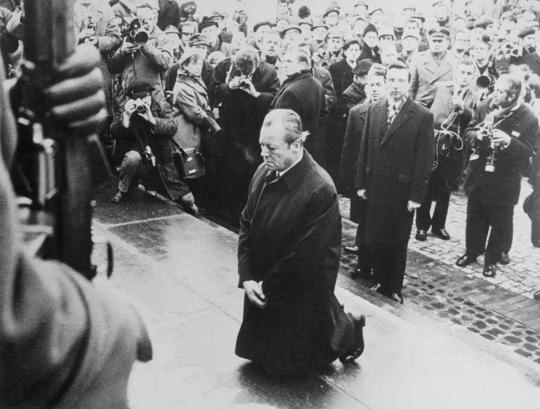 1970年12月7日,當西德總理維利·勃蘭特在華沙猶太隔離區起義紀念碑前下跪時,全世界都在議論,認為德國反思確實徹底,猶太人可以放下歷史了。
