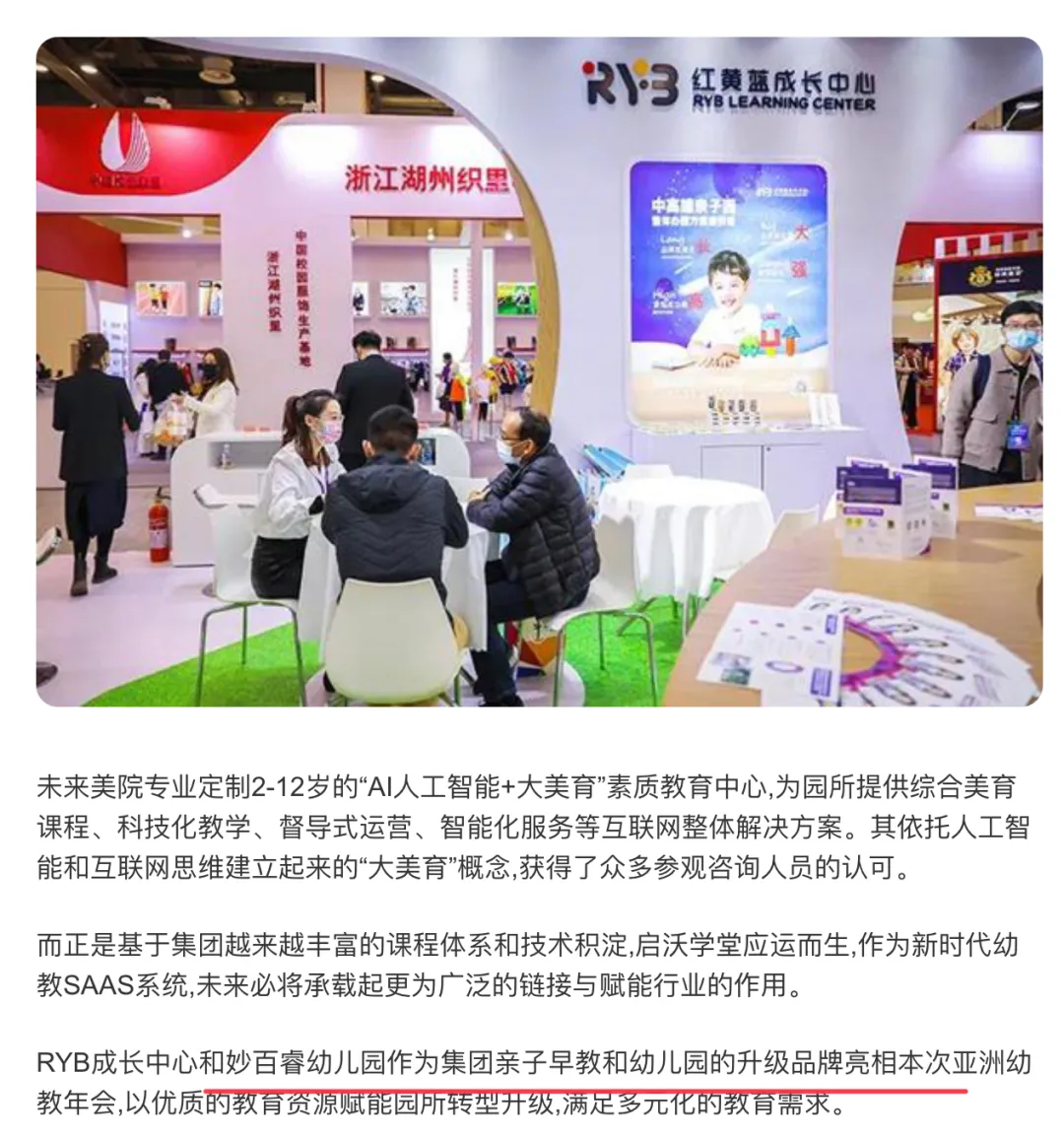 今年9月一篇通稿顯示,妙百睿幼兒園是紅黃藍教育旗下的升級品牌。