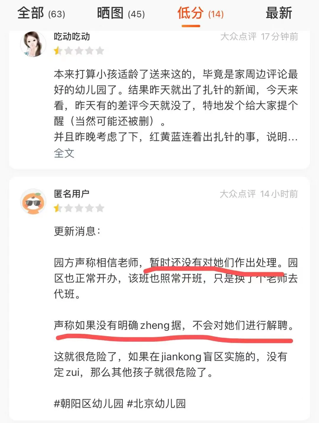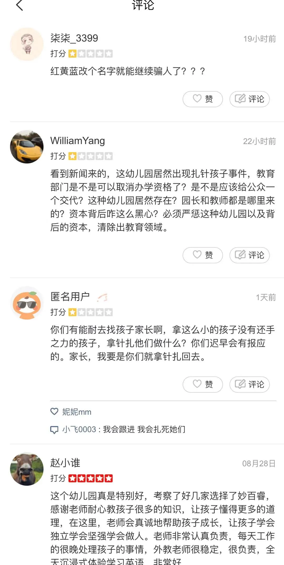 還有網友評論稱,目前園方聲稱相信老師,暫未對老師進行處理。園區營業正常,涉事班級只換了一名老師代班。該網友稱園方表示,如果沒有明確證據,不會對老師進行解聘處理。