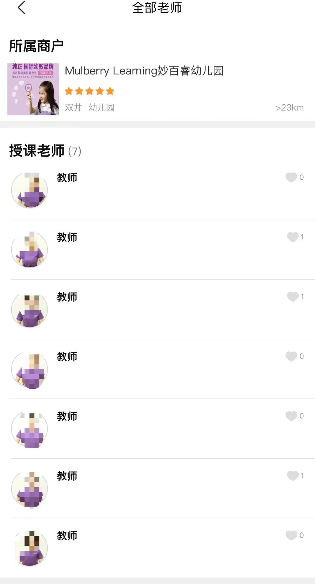 妙百睿幼兒園在服務平台上發佈的信息顯示,該幼兒園一共有7名教師,但是幼兒園方面並未公佈每位教師具體信息。
