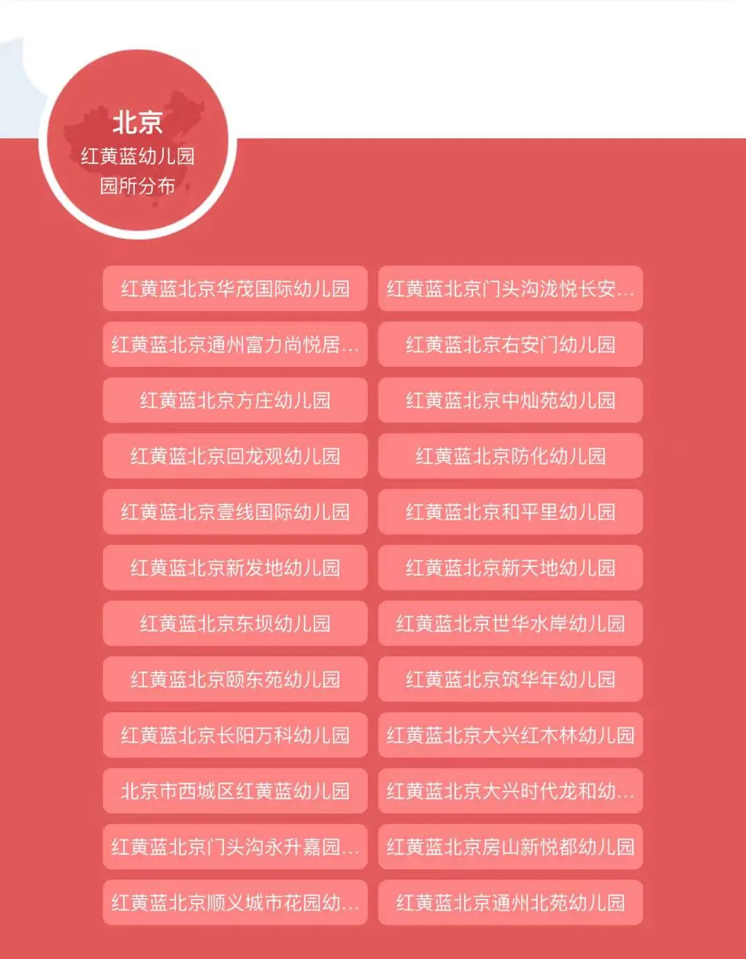 紅黃藍官網顯示,目前,公司擁有近1300家親子園和近400家幼兒園。除了親子園、幼兒園外,還擁有竹兜教育、紅黃藍藝術團、未來美院以及教育研究院等教育品牌與子品牌。