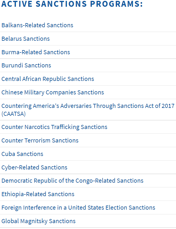 執行制裁的美國財政部外國資產控制辦公室 (OFAC)現有37個制裁項目,累計納入12000個實體(含法人、自然人、飛機、船舶),撤出3000個實體,規模龐大。