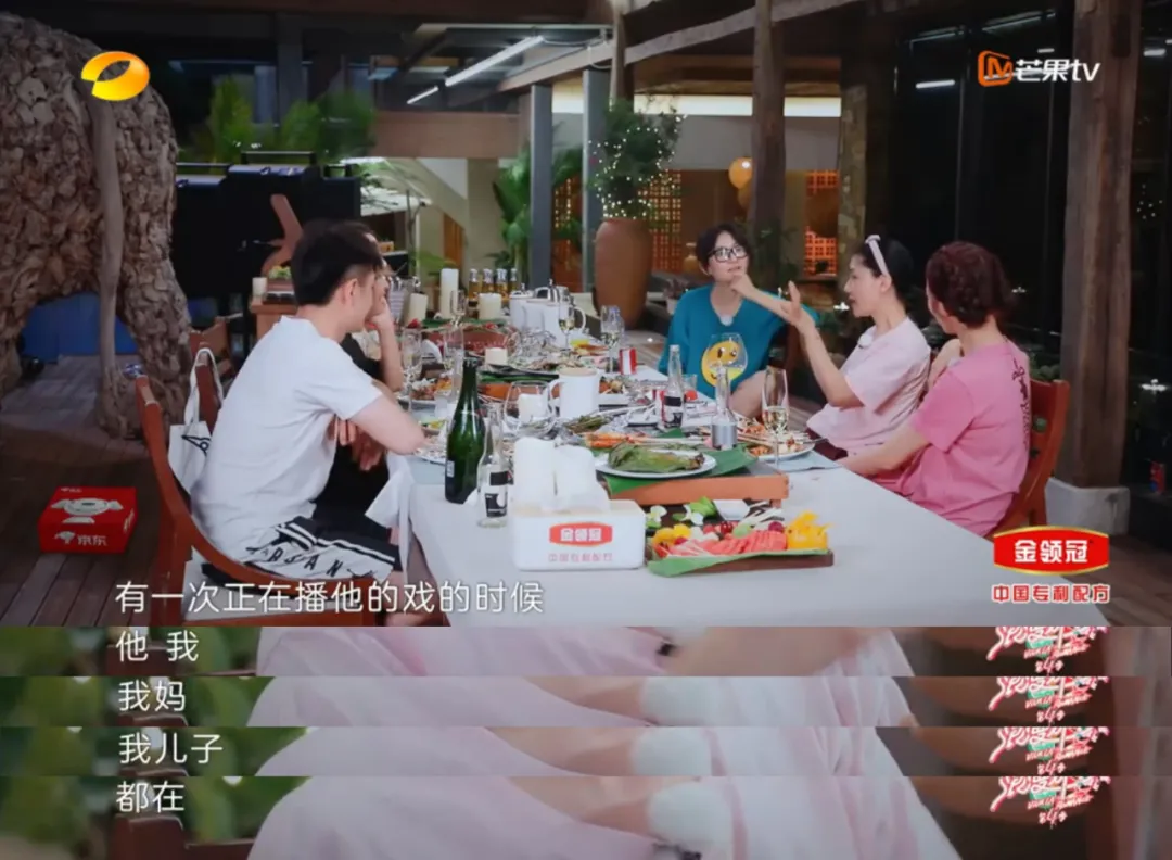 有一回電視播到沙溢接吻片段,他,胡可,他兒子,他丈母孃全都在場。