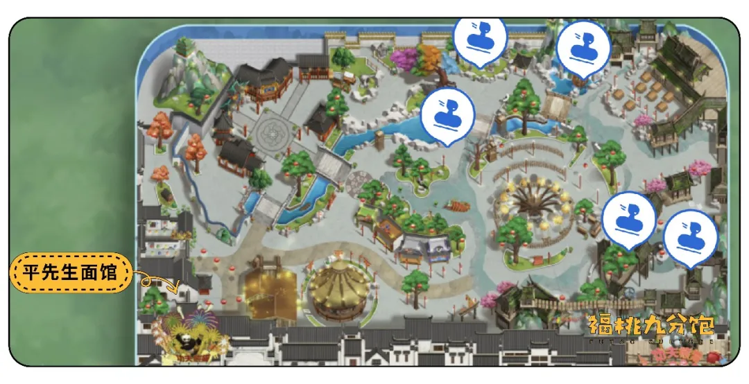 首先,這7個區域都是有餐廳的,而且大多數營業時間都是11:00-21:00,全天營業。所以,大家提前記住兩個點: