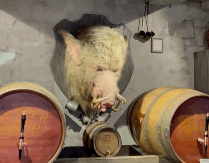 首先,不要去啤酒車、不要去“三把掃帚”,那兩個地方排隊都很長,去豬頭酒吧買!