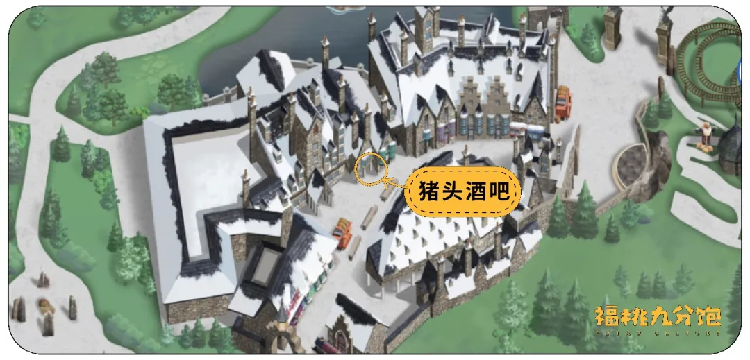 如果你是穿着巫師袍走進園區的哈利波特鐵粉,那就去“三把掃帚”排隊吧!每天11:00開始營業,但最適合拍照的景觀位很少,所以建議你們10:00就去排隊。