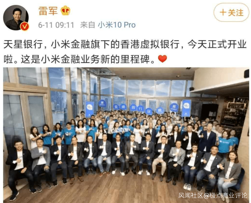 去年10月9日,先後供職於摩根士丹利和瑞信的林世偉加入小米,任小米集團副總裁兼CFO。今年6月底,接任雷軍出任天星銀行董事會主席。天星銀行是一家虛擬銀行,雷軍此前表示,這是小米金融業務新的里程碑。