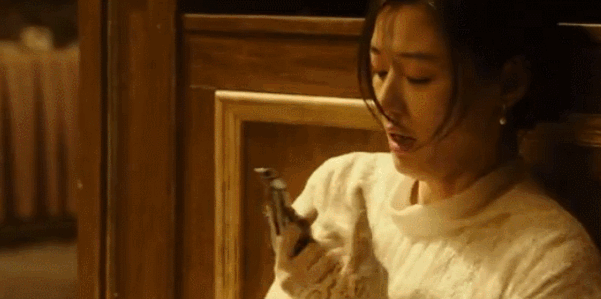 比如在拍攝《暗殺》時,她拒絕使用模型,而是穿着高跟鞋、手裏扛着10斤重的真槍;