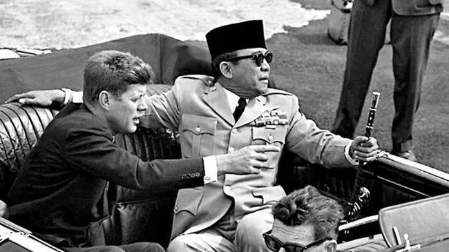 1961年,時任美國總統肯尼迪(左)會見蘇加諾