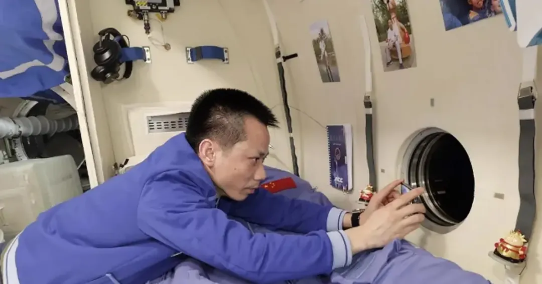 文中介紹稱,宇航員在空間站上的私人空間內設施出奇的豪華,比如卧室佔了天和號核心艙上的一大段,湯洪波把手冊、耳機和家人的照片貼在他寬敞的雙層牀的牆上,甚至還有一個私人窗户供他觀看外面的景色。