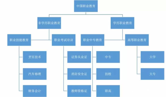 **從學制層次看,**職業教育已經擁有了基本完善的中等職業教育體系,辦學實力強大的職業專科教育體系,並已突破了職業本科教育的發展,而在20 年前,我國職業教育還基本集中在中等教育層次。