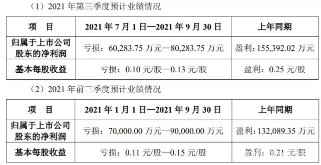 10月15日,中公教育披露《2021年前三季度業績預告》, 預計公司2021年前三季度虧損7億元-9億元,上年同期盈利13.21億元。其中,公司預計2021年第三季度虧損6.03億元-8.03億元,上年同期盈利15.54億元。