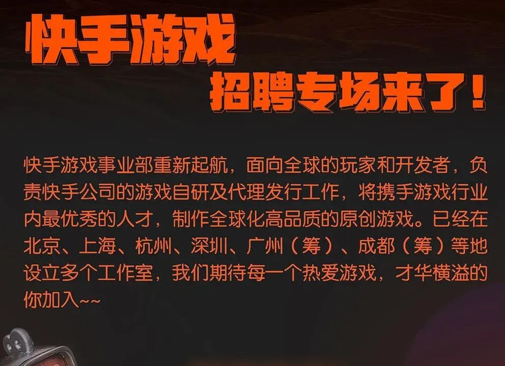 近日,快手遊戲業務部宣佈正式升級為快手遊戲事業部,業務涵蓋自研及代理發行業務。據戰略規劃,快手將在北京、上海、杭州、深圳、廣州(籌)、成都(籌)六城開設工作室。