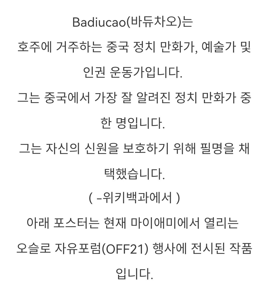 但是經過我的一番查證,海報的作者實為反華人士“巴丟草”,海報現正在美國邁阿密舉行的“奧斯陸自由論壇”上展出。