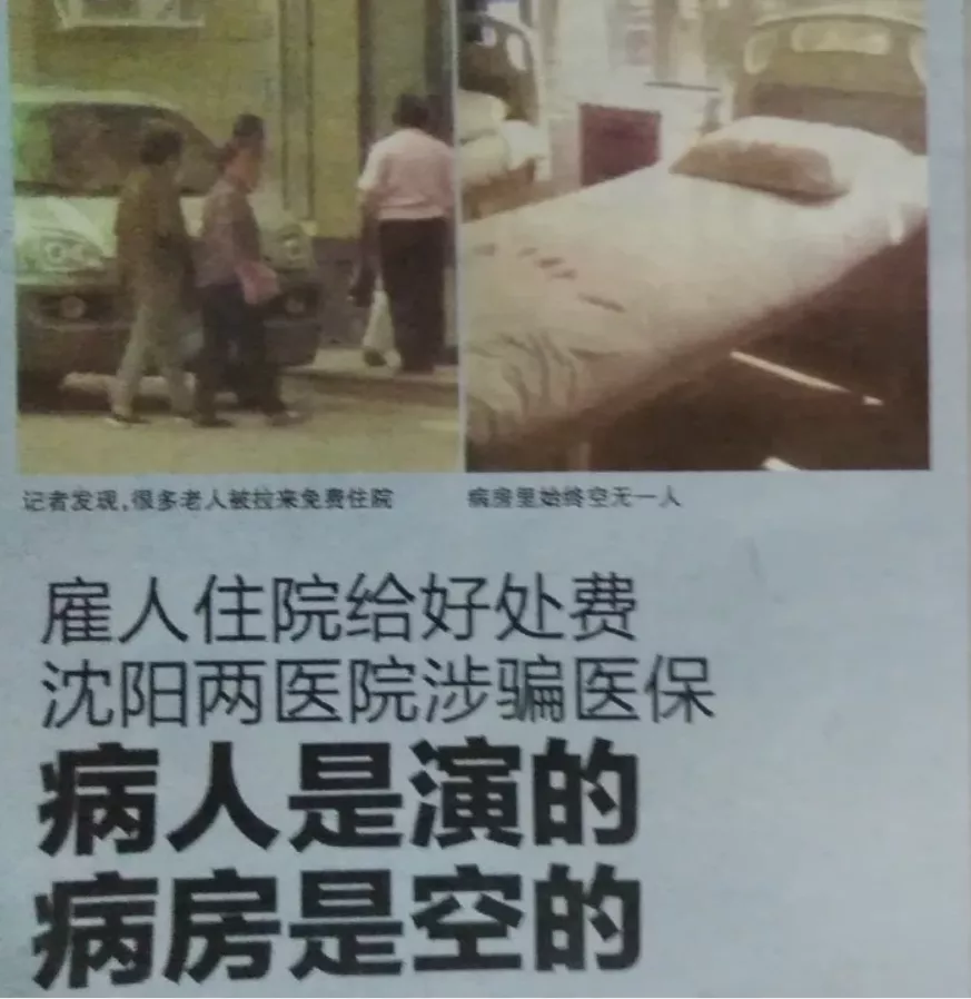 河南安陽某民營醫院花錢僱人住院,醫務人員每帶一人住院,就得中介費100元。出院時再給“病人”1000至1500元獎勵。該醫院已騙取醫保基金數百萬元。