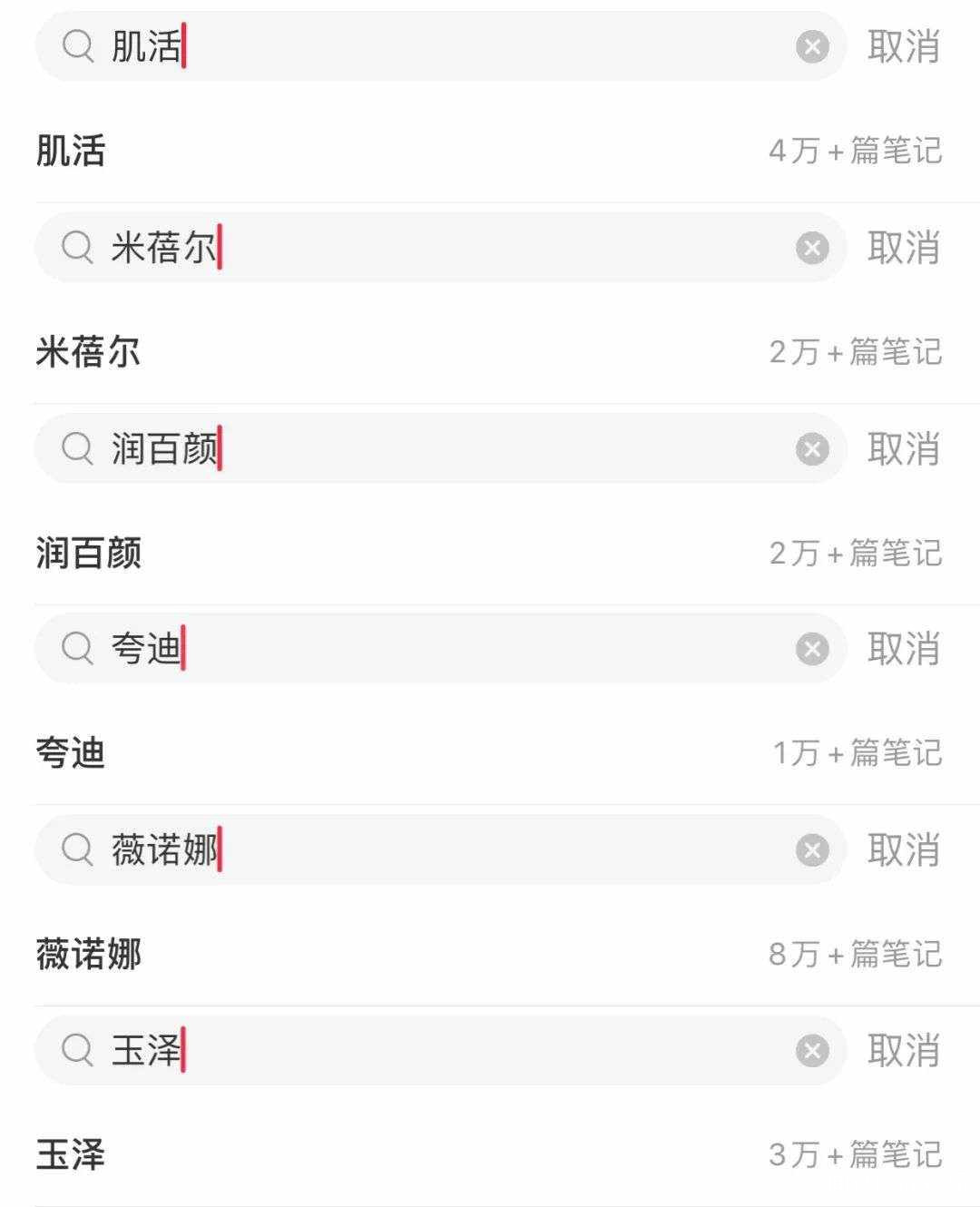 即便是米蓓爾和肌活這兩大核心產品,在功能性護膚品賽道內,仍被各自的競爭對手狠狠壓制。在小紅書上,肌活和米蓓爾的相關筆記數分別為4萬和2萬,而和兩者定位高度一致的薇諾娜和玉澤,相關筆記數分別為8萬和3萬。即便是主打玻尿酸精華護膚兩大王牌潤百顏和誇迪,筆記數也僅有2萬和1萬。