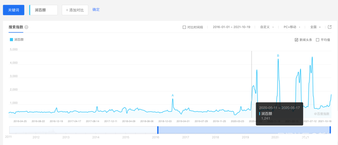 2020年5月起,潤百顏的搜索熱度明顯提升