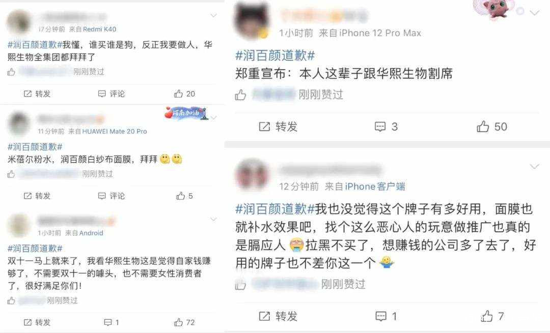 這次孫笑川推廣潤百顏事件發酵後,許多消費者表示不會再選擇華熙生物旗下任何品牌,更有消費者表示會倒戈至華熙生物的競對品牌。