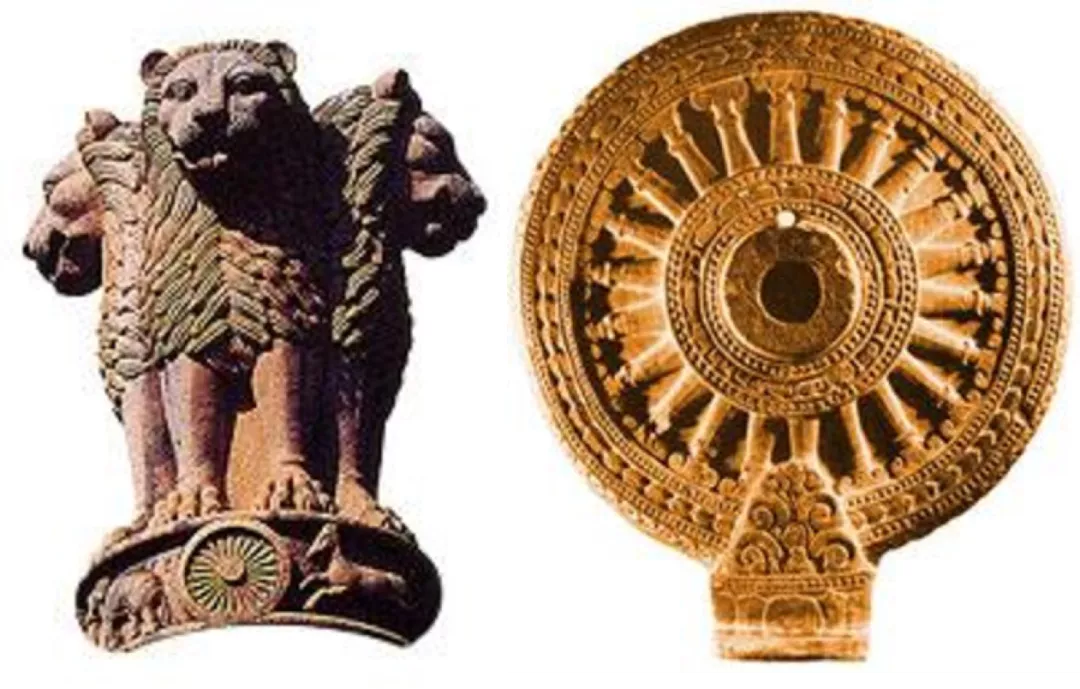 **第一,阿育王法輪象徵着印度的傳統文化。**印度國旗正中的象徵物既不是印度教的象徵物,也沒有采用甘地紡輪,而是選用法輪,有其深刻的考慮。**法輪是佛教象徵物,阿育王是印度史上第一次基本實現印度統一的帝王,而且是倡導宗教寬容的明君。**選用與佛教和阿育王有關的象徵物,其目的即在於避免對國旗的印度教色彩過度猜測。這是尼赫魯將國家與宗教分離的世俗主義承諾的重要體現。[26] 尼赫魯説“阿育王法輪是印度古老文化的象徵”,印度的文化傳統就是“不停滯,不僵化,總是能適應新的發展和新的影響,但總是保持其文化的本質。”印度最偉大的時代是與世界各國保持密切聯繫的時代,而阿育王時代就是這樣一個時代。[27]
