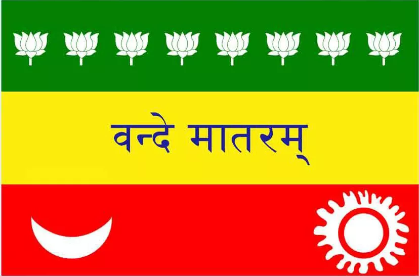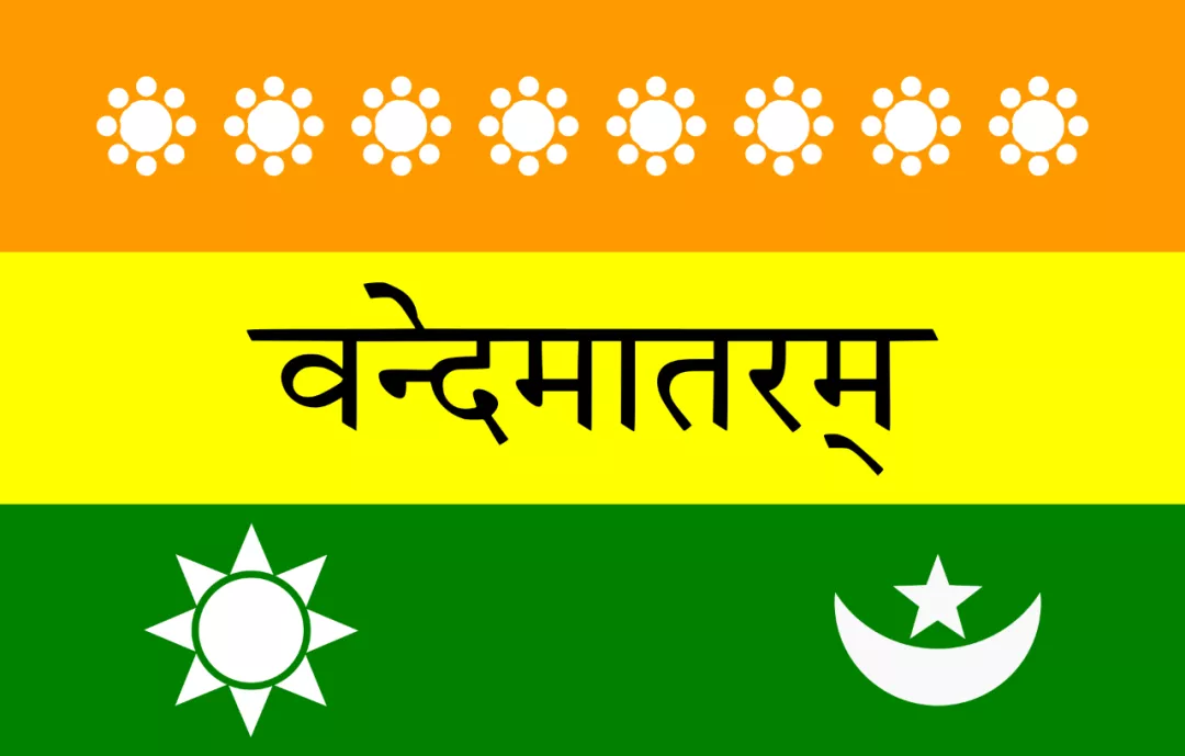 **印度國旗的萌芽與印度反抗英國殖民統治、爭取民族自由的鬥爭密切相關。**1905年,英國殖民統治者宣佈分割孟加拉省。這一決定極大刺激了印度民族情緒,推動印度民族運動在20世紀初達到一輪高潮。1906年,薩欽德拉·普拉薩德·鮑斯(Sachindra Prasad Bose)和蘇庫馬爾·米特拉(Sukumar Mitra)在反對分割孟加拉的運動中設計了一面包含“致敬母親”(Vande Mataram)字樣以及蓮花、太陽、新月圖案的綠黃紅三色國旗。1907年,比凱吉·卡瑪夫人(Madam Bhikaiji Cama)將該旗幟略加修改,將三色由綠黃紅改為橙黃綠,將新月圖案修改為星月圖案,保留了“致敬母親”字樣。1917年,國大黨領導人提拉克(Lokamya Tilak)和安妮·貝桑特(Annie Besant)設計了一面包含七星、星月以及米字旗標誌的紅綠兩色旗。[5]