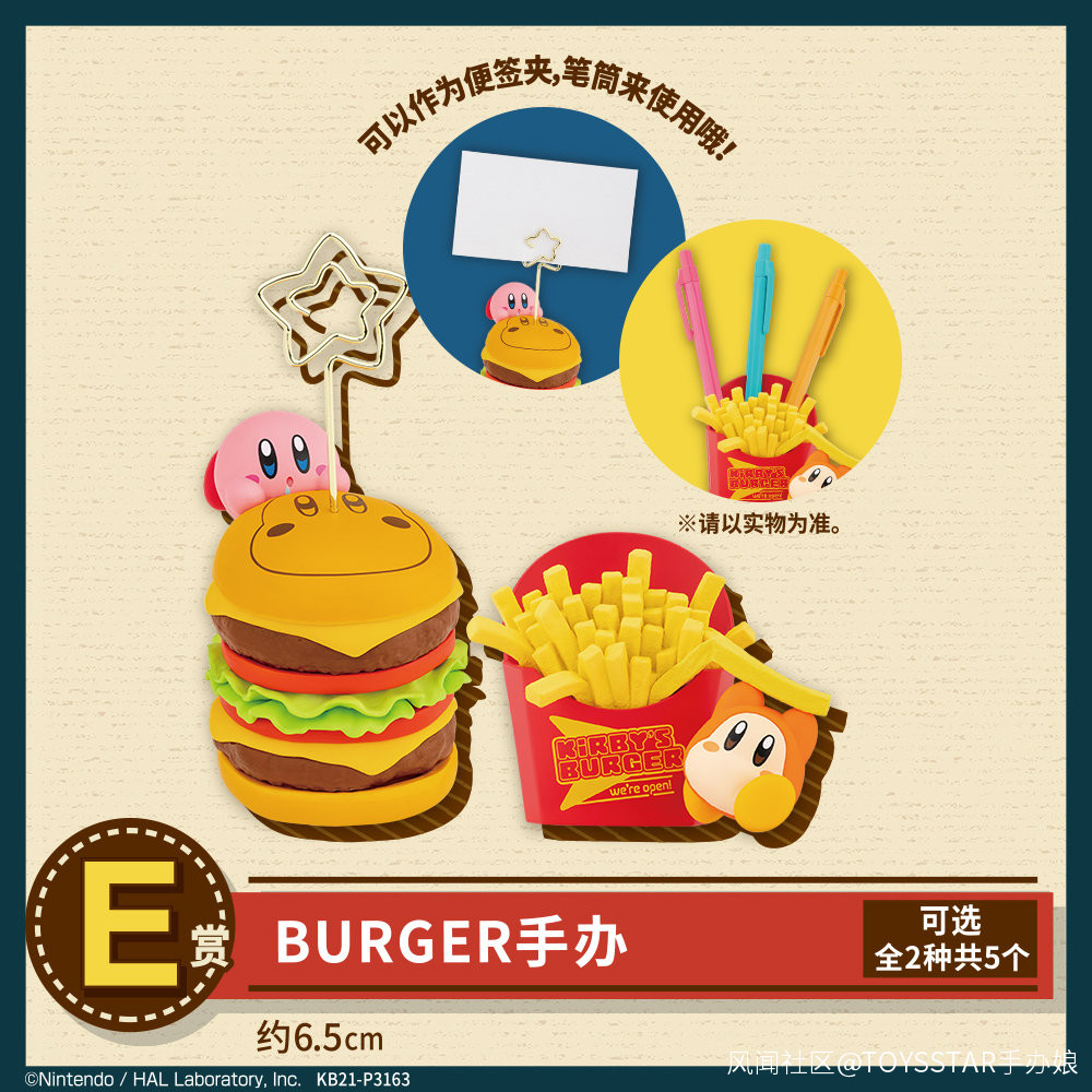 E賞是漢堡手辦,漢堡包款附帶夾子,可以固定卡片和照片等等,薯條款則可以充當筆筒使用!