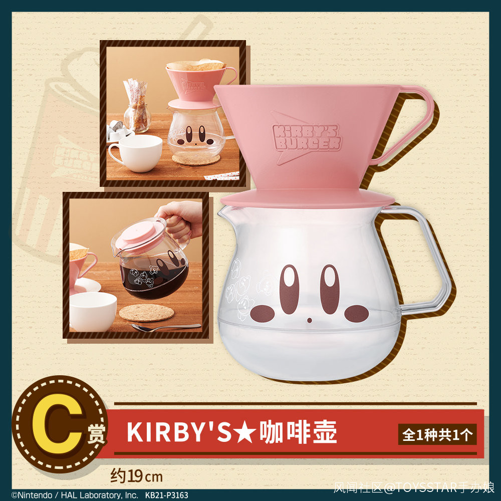 C賞是卡比咖啡壺,玩過《星之卡比》的小夥伴肯定都知道,卡比有着通過吞噬轉變形態的力量,那麼化身咖啡壺的卡比,會帶來怎樣美味的咖啡呢?而且是超實用的單品呢!