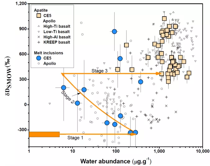 嫦娥五號玄武岩樣品中磷灰石和熔體包裹體的水含量和氫同位素組成
