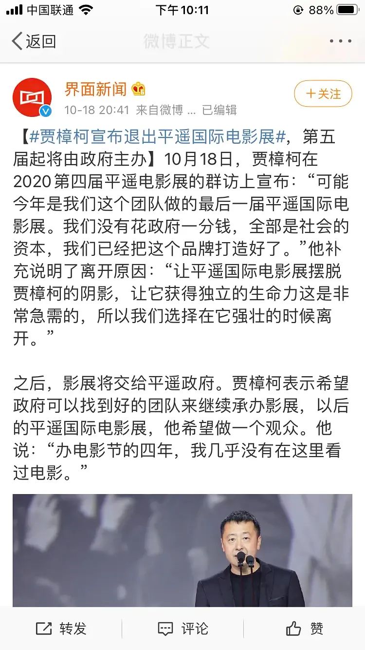 10月7日起,賈樟柯的宣傳重心便從往日的《一直游到海水變藍》轉移到了平遙影展的身上,從微博到朋友圈,賈樟柯幾乎不遺餘力地轉發每一條與平遙影展有關的消息;