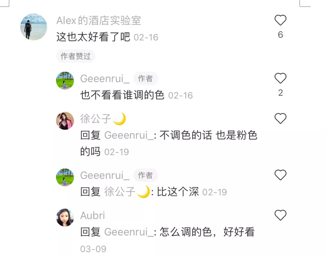 博主也一直在評論裏強調這是調了色的,肉眼看到的和圖片不一樣: