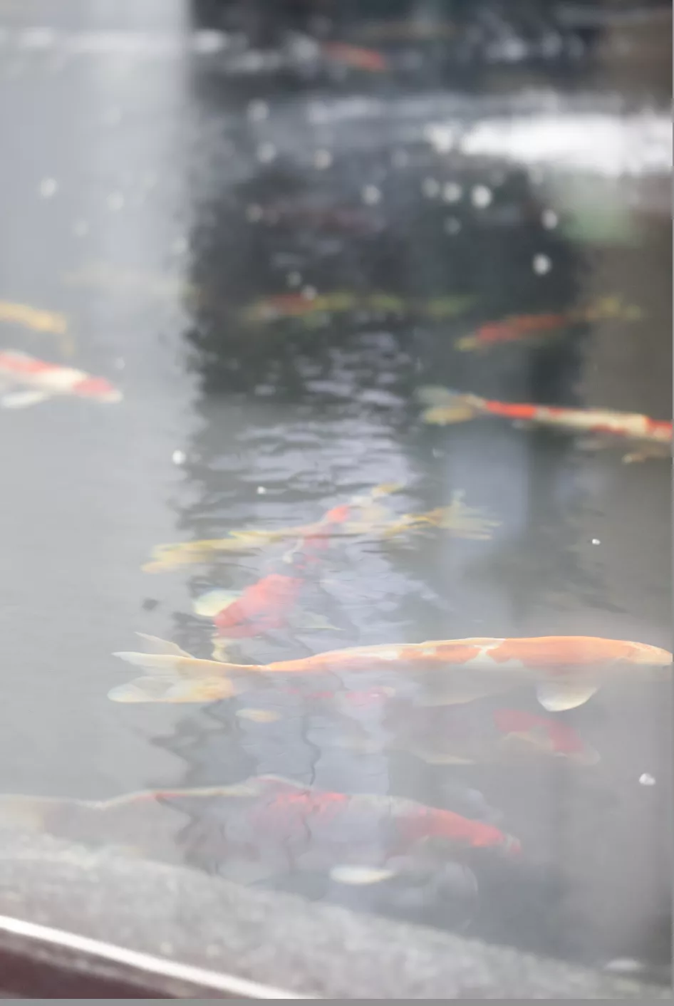 之前去蘇州柏悦酒店,發現酒店裏養了一池特別大特別肥的錦鯉很好看,但因為隔着兩層玻璃還有水面反光,所以拍出來的原圖長這樣: