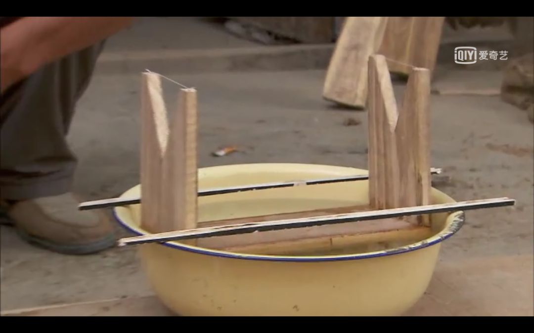 “水鴨子”的製作方法很簡單,它由三塊木板組成,橫板用來掌握水平,垂直木板上系兩根細繩,把它放到裝滿水的臉盆裏,用前後兩條細繩對準標杆,就可以測量出所需要的數據。
