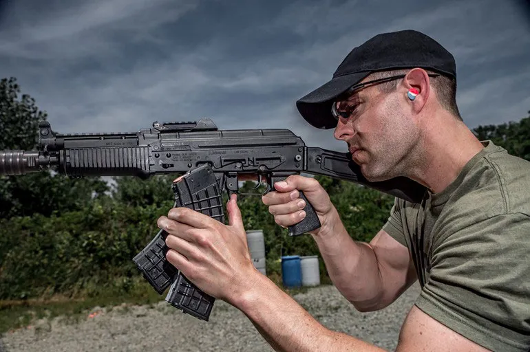 由於缺乏彈匣井的引導,因此射手要快速將彈匣插入槍內,需要的不僅僅是射手的肌肉記憶,還需要用手指控制重心以正確地將彈匣插入,因此才需要射手握住彈匣的上三分之一處,這也是在過去幾十年時間裏無數射手總結出的寶貴經驗。