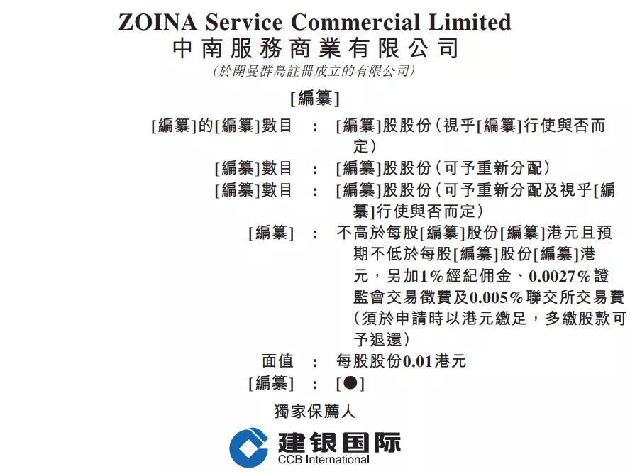 據港交所披露,中南建設旗下物業公司中南服務商業有限公司(簡稱“中南服務”)向港交所遞交主板上市申請,獨家保薦人為建銀國際。中南服務曾於今年3月29日首次在港交所提交招股書,並於近期失效。