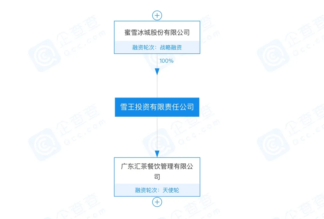 據悉,廣東匯茶餐飲管理有限公司為茶飲品牌匯茶的關聯公司,本輪融資為天使輪。