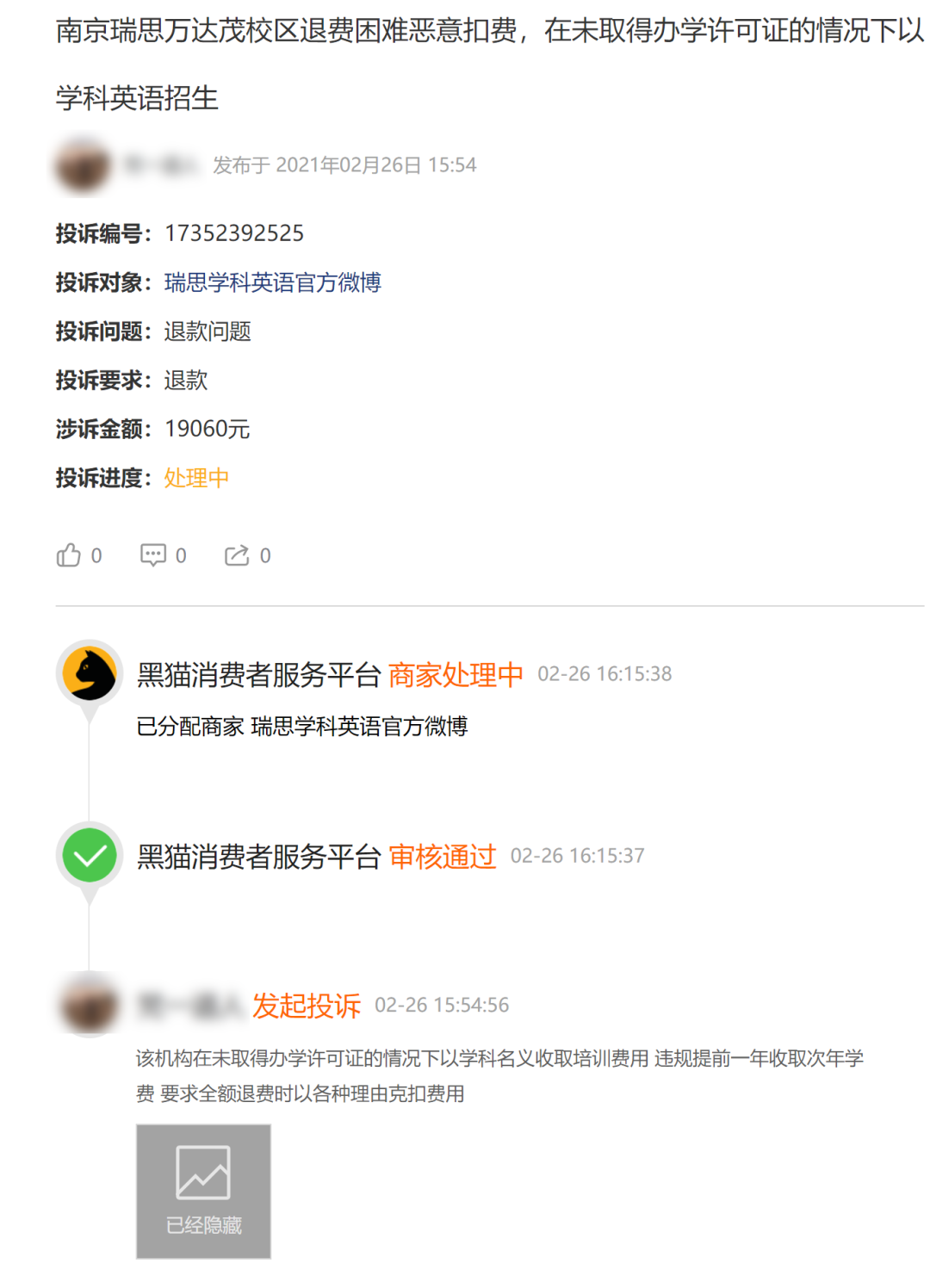 甚至有消費者涉及金額高達19060元。截止目前,這一投訴過去近8個月仍顯示處理中。