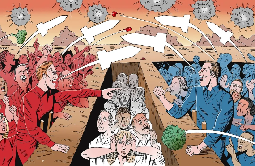 ▲美國紅藍兩黨激烈對抗、你死我活,中間派夾在火線之中無處容身,“美利堅合眾國”已淪為“美利堅分眾國”。