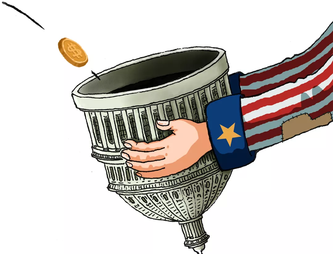 ▲深陷債務危機讓美國聯邦政府信譽掃地(漫畫 | 翟海軍)