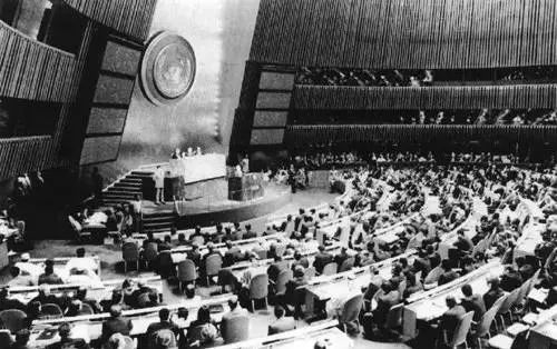 1945年4月25日,50多個國家的代表聚集在舊金山,商討着成立一個國際性組織以避免戰爭的發生。這個組織就是聯合國。當時,美國極力要求承擔會議舉辦地的工作。各國代表到達當天,美國也舉行了盛大的歡迎儀式。