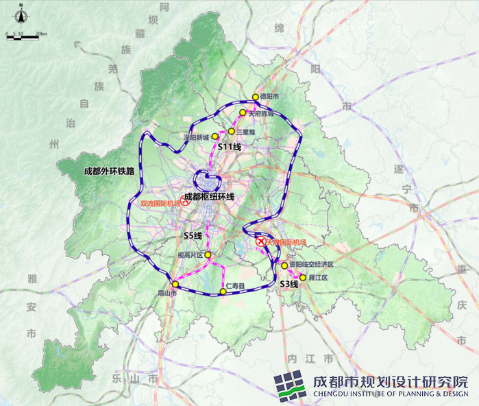 上述三條市域鐵路,被視為成都都市圈的軌道“骨架”。根據綜合交通專項規劃,成都都市圈正統籌佈局以成都為中心樞紐的多層次多制式軌道交通網絡,推動幹線鐵路、城際鐵路、市域(郊)鐵路和城市軌道交通“四網融合”。