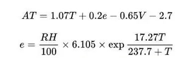 根據1984年,羅伯特·史特德曼發表的《體感温度的通用公式》(公式警告